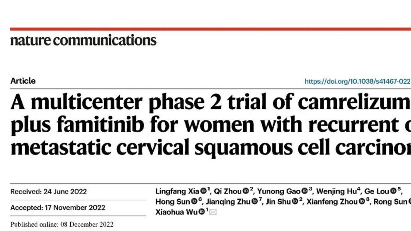 尊时凯龙创新药卡瑞利珠单抗联合法米替尼用于复发或转移性宫颈癌研究结果荣登JCO